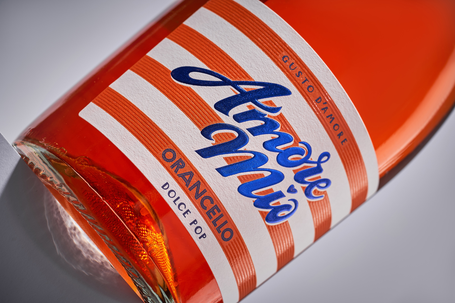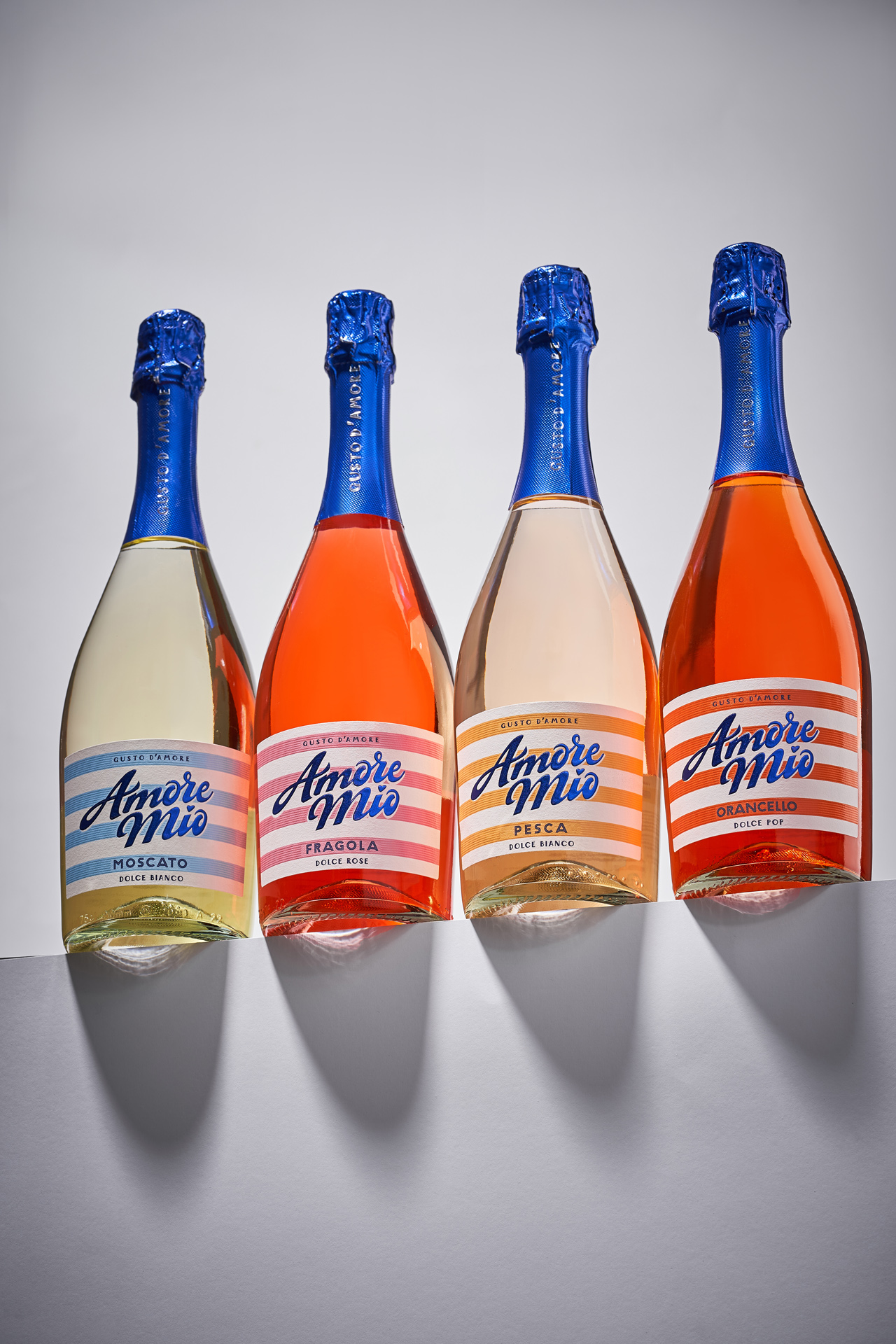 Amore Mio is a ready-to-drink wine-based cocktail line created for emotional and impulse-driven consumption. The studio’s task was to build a visual identity associated with summer and dolce vita, while maintaining an accessible price perception without looking cheap. The design needed to stand out instantly on shelf, clearly differentiate flavors and function as a cohesive system. The key challenge was to balance lightness and attractiveness with a clean, contemporary structure.