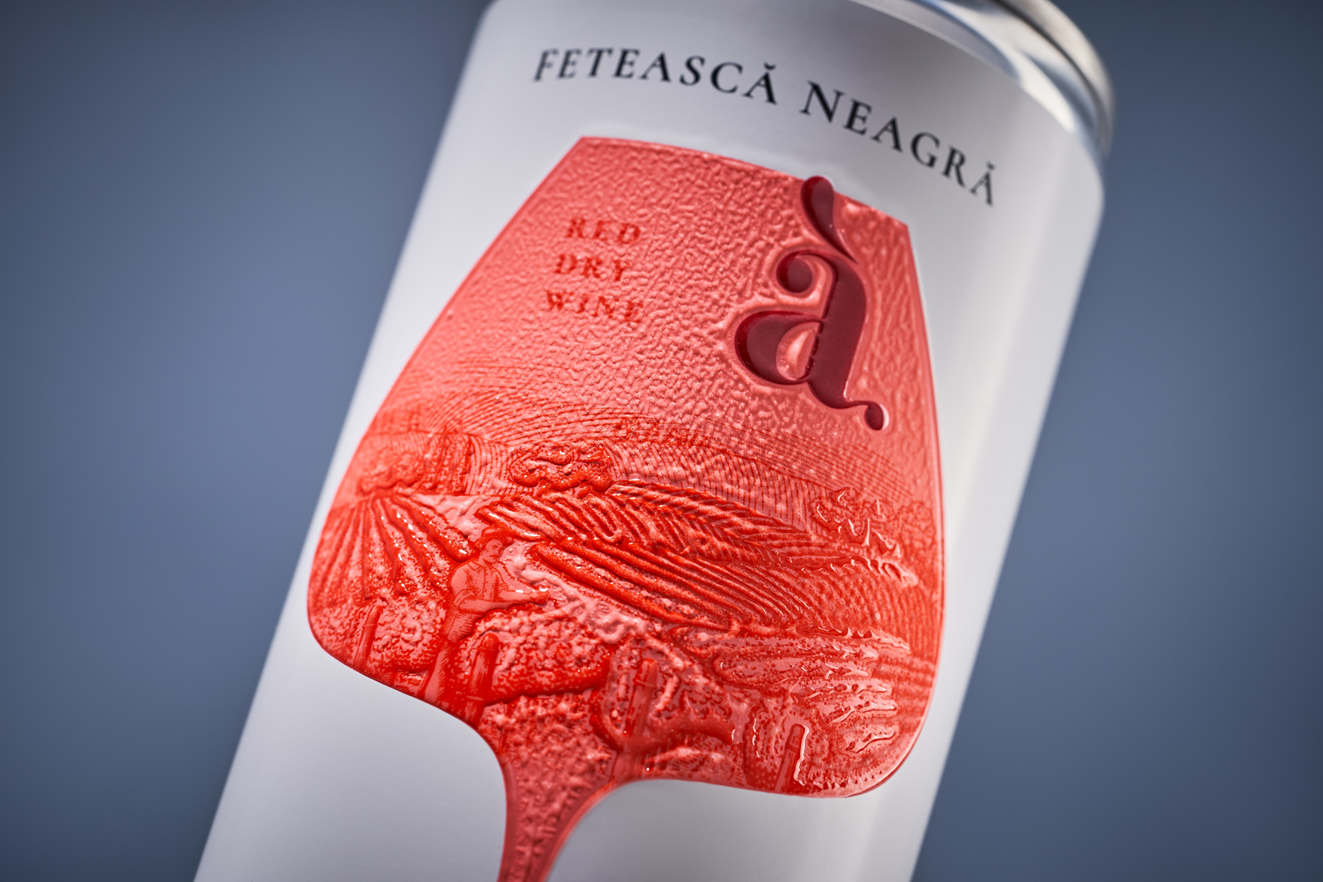 Ключевым элементом визуального решения стал образ винного бокала - символ, напрямую связанный с культурой потребления вина. Внутри его формы раскрывается классический винный пейзаж, отсылающий к традиционной эстетике этикеток и идее терруара. Контраст между привычным визуальным кодом и современной упаковкой формирует новый взгляд на продукт. Дополнительный слой создаёт рельефная текстура бокала, усиливающая тактильное восприятие и делая взаимодействие с упаковкой более выразительным. В результате дизайн не просто объясняет содержимое, а переопределяет сам формат, соединяя классическое вино и современную подачу.